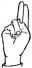 На ћирилици написано БОГДАН КЕЦОВИЋ састоји се из 13 слова [?]. Исписано ћириличном једноручном азбуком за глувонеме:
